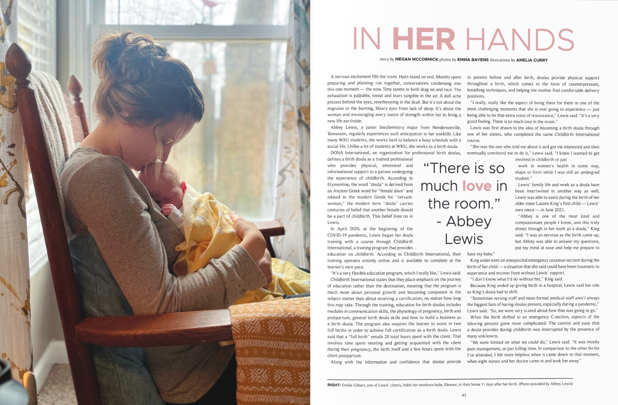 The following story, "In Her Hands," was published in Issue 11 of WKU's Talisman Magazine.